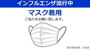 マスク着用についてのご案内 公開済み: 2025年11月5日更新: 2025年11月5日作成者: staff1カテゴリー: すべて, 病院より インフルエンザが流行してきました。 患者さんおよびそのご家族の感染防止対策のため、 院内でのマスク着用にご協力をお願いいたします。