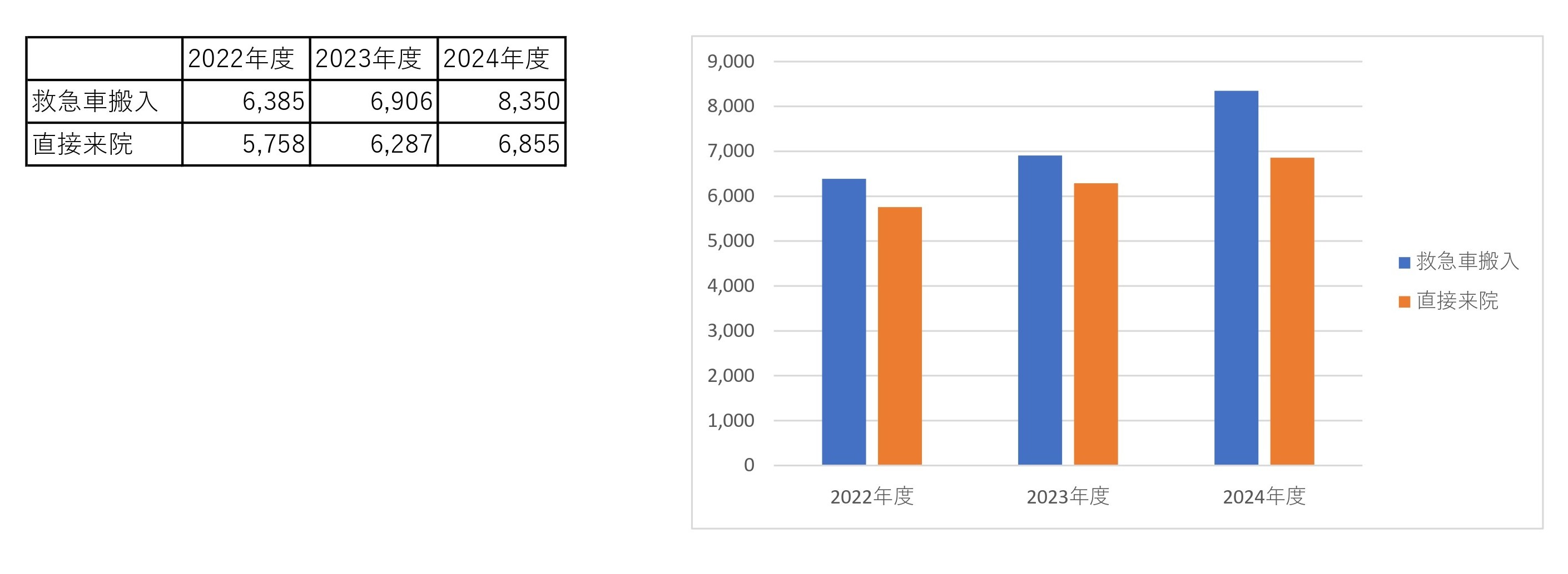地域の基幹病院として病院全体で救急医療を担っており、現場救急隊および東京消防庁司令センターからの急患以来や近隣の病院や開業の先生方からの診療依頼を可能な限り受け入れています。