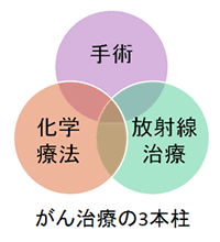 根治治療やがんによる症状を和らげるためなど、さまざまな目的で行われます。現在では、手術・放射線治療・化学療法(抗がん剤)ががん治療の3本柱とされています。